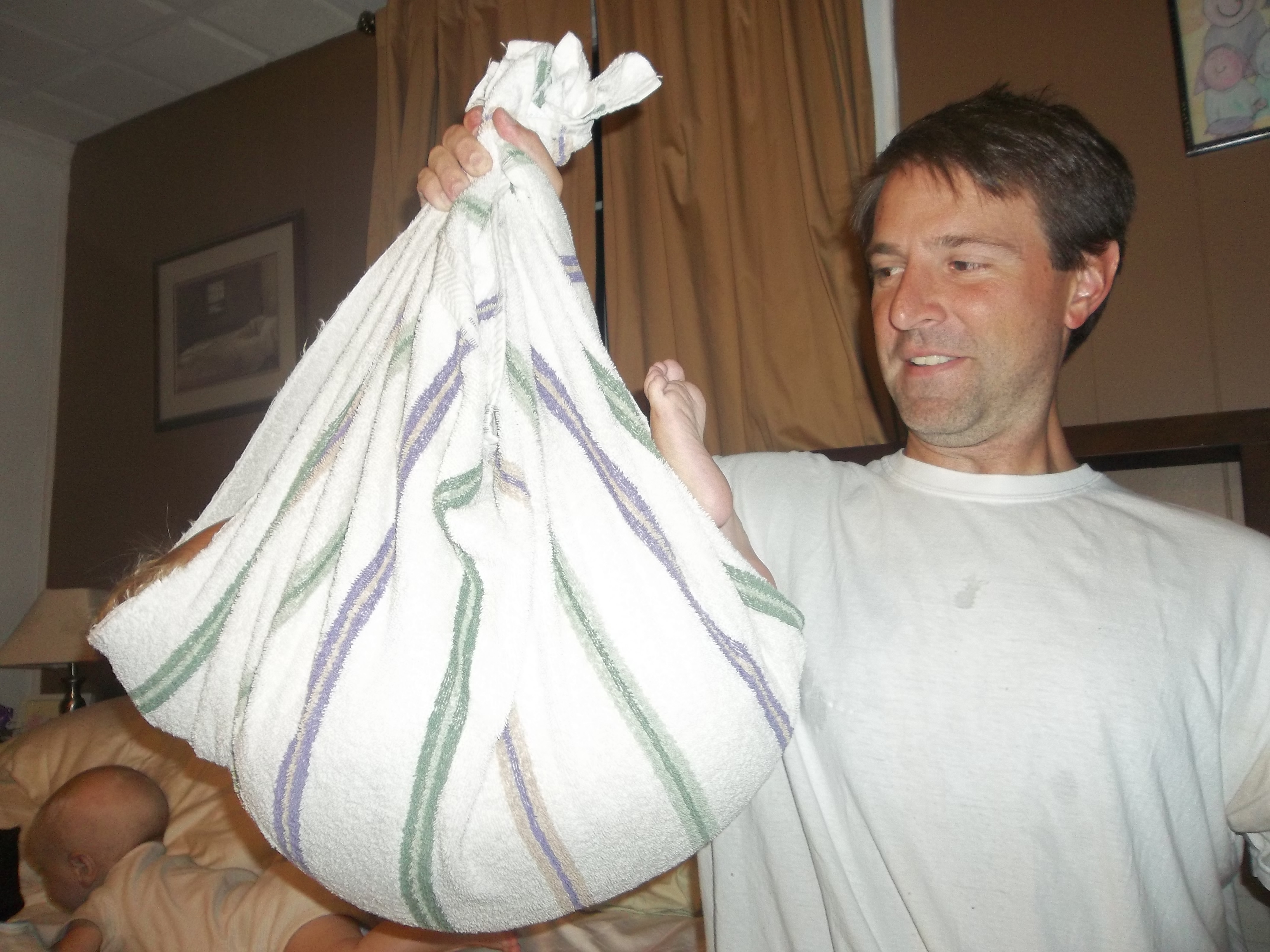 What a grand night I am having! Marcia went out to dinner with some friends. And Elizabeth is at a laser tag party for her friend, Sophia. Which means I’ve got 5 munchkins all to my self. And Eden is a huge helper tonight. All bathed and getting ready for bed and only one thing to figure out…