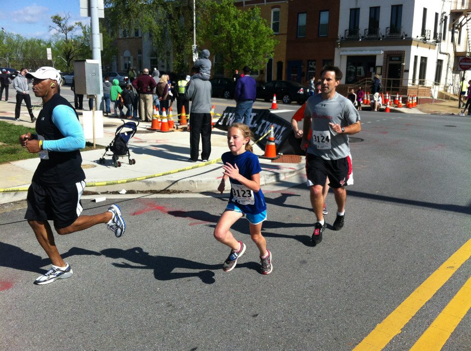 Liz and I started the race together and ran the whole thing together. At the starting line, she got all the way up to the front with the professional runners. It was a good day to run, just a few days removed from the Boston Marathon where there was a bombing. Liz said she wanted to run for the victims in Boston, especially an 8 year old that was killed.