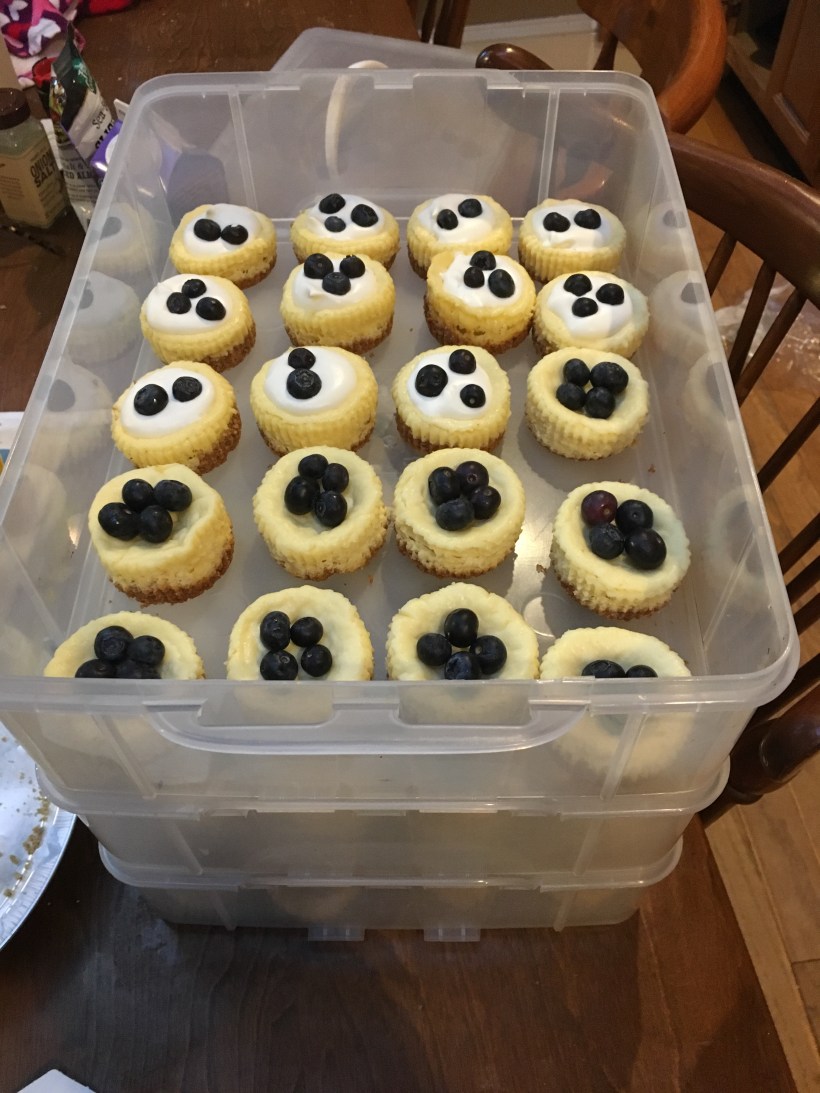 Liz worked really hard for three days to prepare for the Bake Sale at SPSG on Pi Day. Maggie diligently helped her. They made mini cheesecakes and little pies. When Liz found out that the Math club was not sponsoring a table at the Bake Sale, she let us eat the pies and took the cheesecakes in to sell at the bake sale.