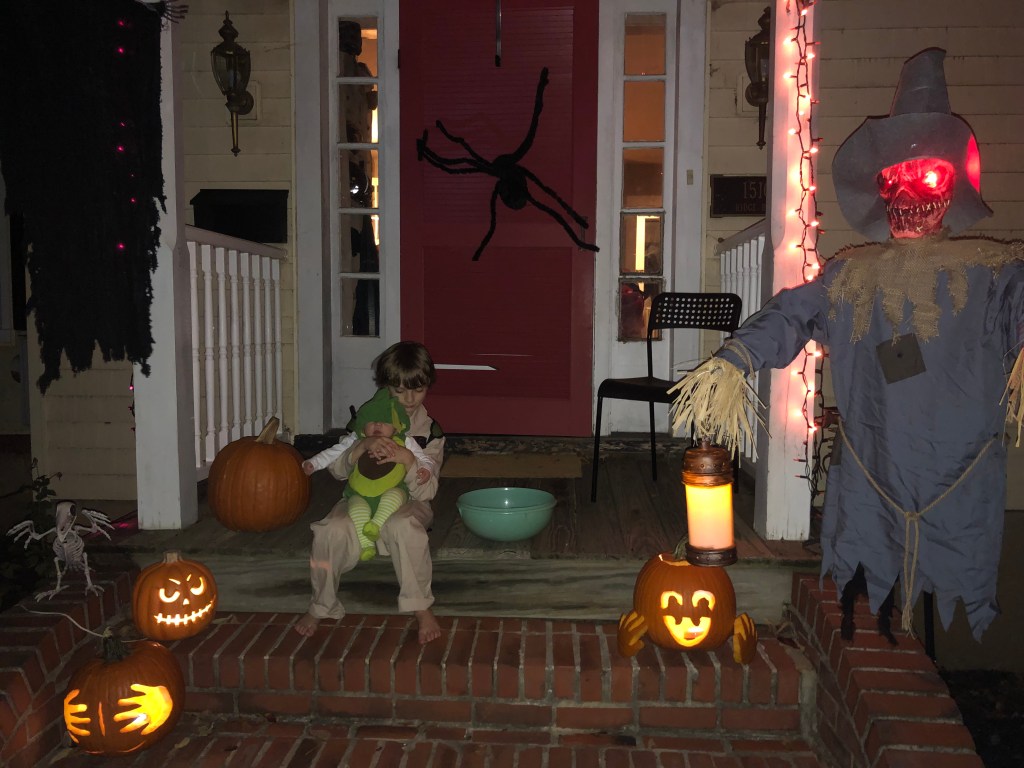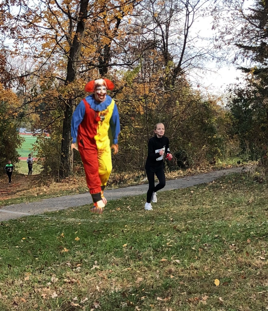 We started to run, but Jack was afraid the clown would steal the tree. So he picked it up and started pulling it up the hill, so fast. We never looked back. We heard some weird voice, “I’m going to get that tree little boy.” We turned back and saw a whole group of clowns with knives so we ran as fast as cheetahs up the hill.