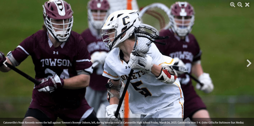 Noah is off to a good start his junior year. So far, he is leading his team in scoring. I miss a lot of his games, but got to see three of his games the last week. Last weekend, in scrimmages in PA, his team scored 11 goals, and he had 6 goals and 3 assists. In their season opener, he had 3 goals and two assists in a 7-4 win over Century. And then in a big matchup yesterday against Towson, he scored the first goal and was the primary ball handler for his team in the first half. They won the matchup 5-4 and he played well. I missed their first two scrimmages, but watched the replay on film, and he had at least 4 goals and a few assists in each of these games. He is so quiet and humble. And he is so fearless and tough. I love seeing him having success on the field.