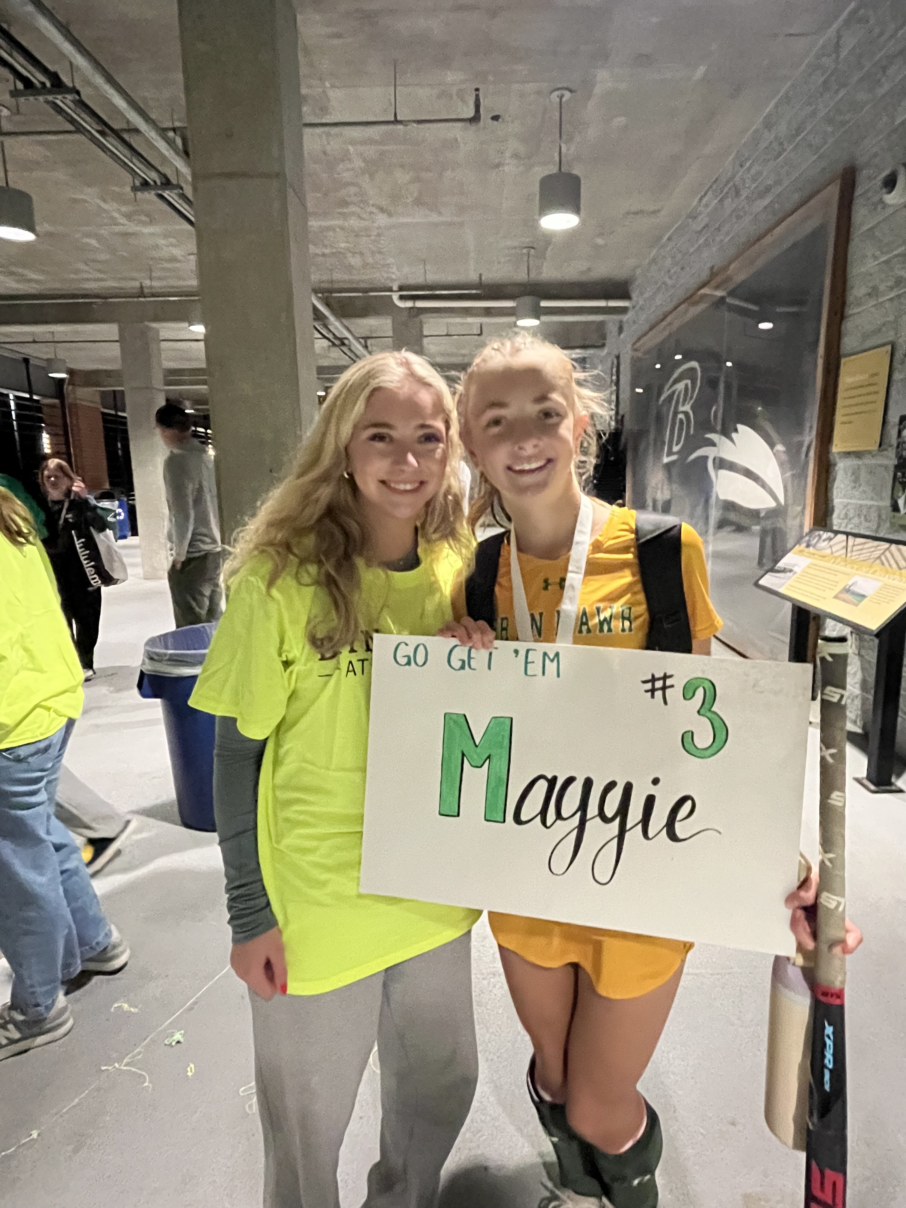 Maggie’s fanbase was awesome. The girls decorated signs and came out to cheer Maggie on. Kendall, Maggie’s longtime friend who played field hockey (and lax!!) all the way growing up together, came out to cheer Maggie on. Eden and Liz played together at St Pauls, and both helped Marcia coach the girls in field hockey in Catonsville over the years. Grammy and Pop Pop also came out to watch Maggie compete.