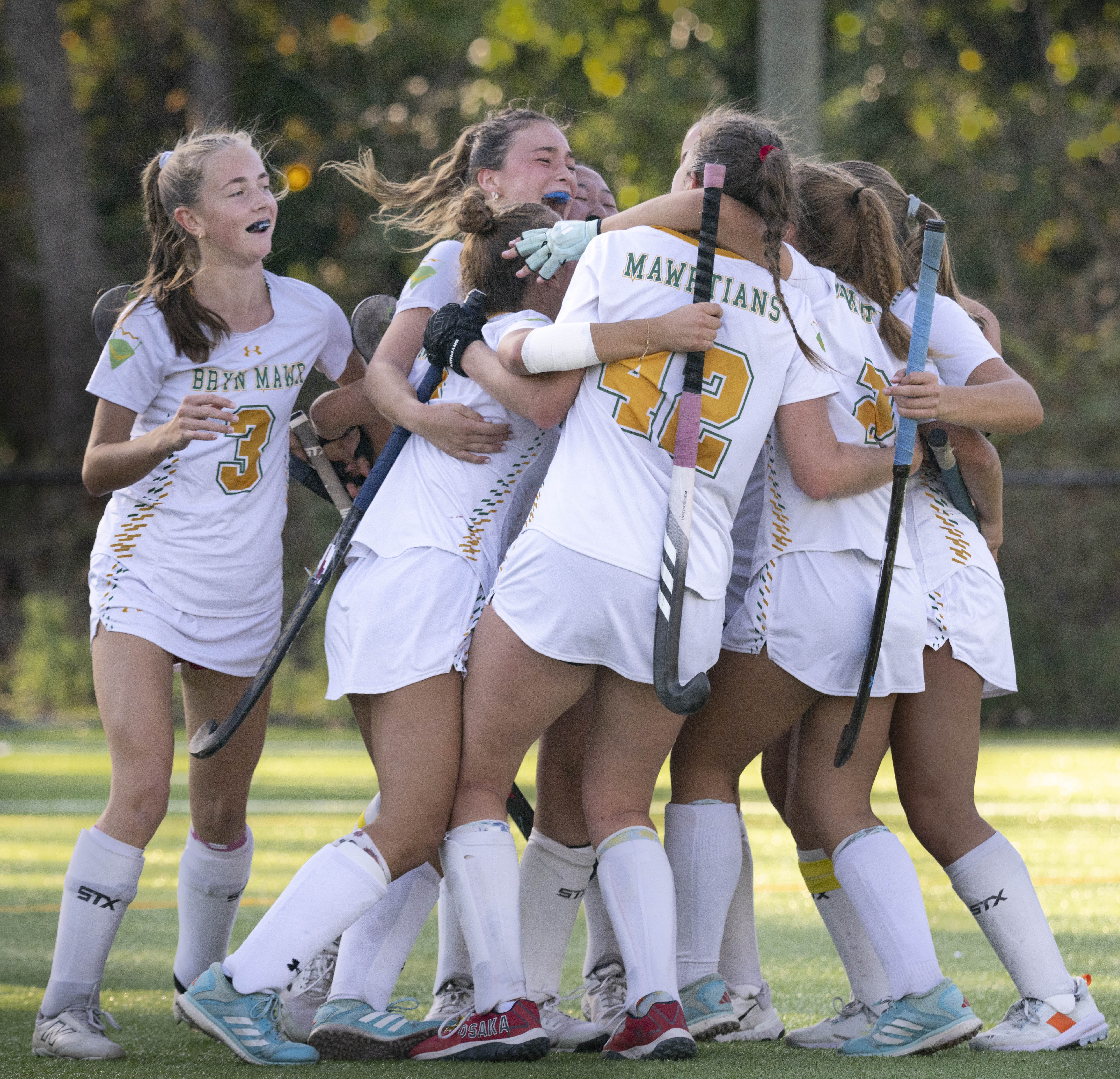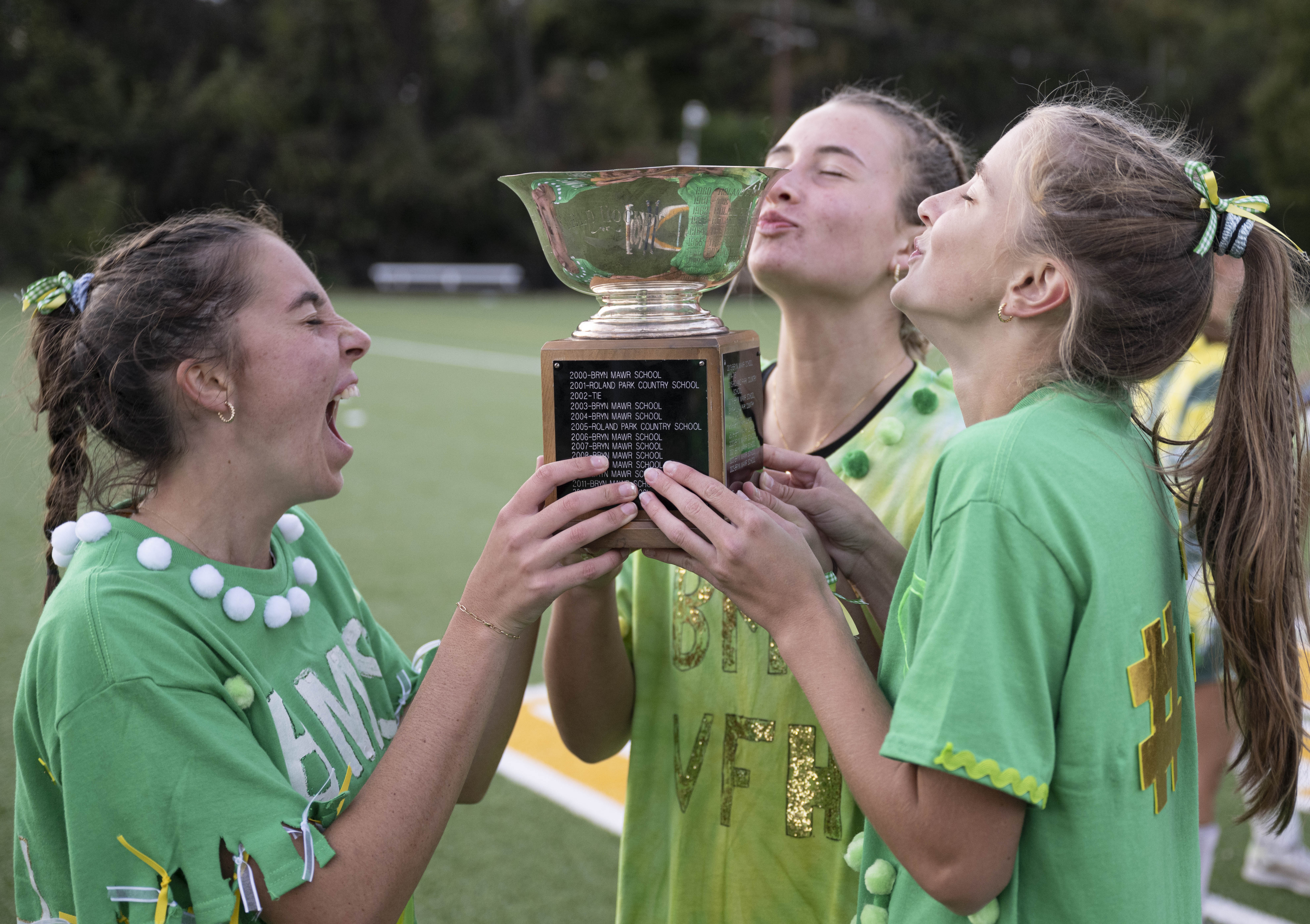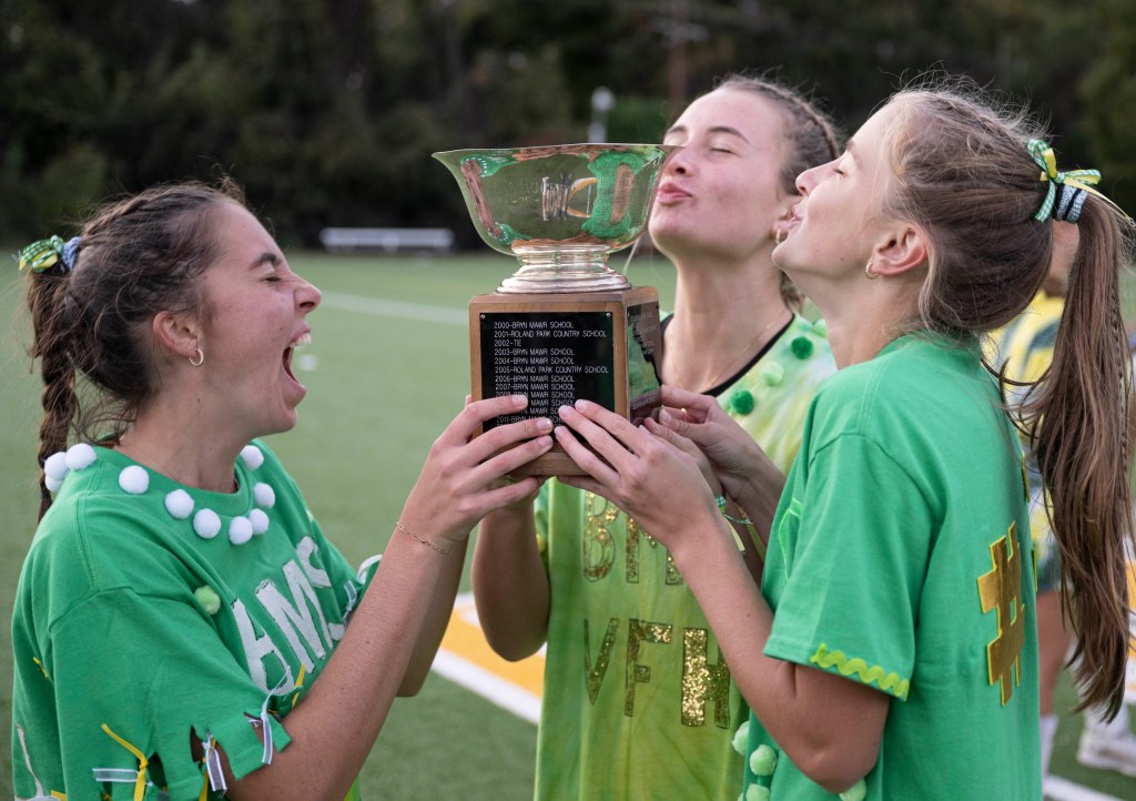 It was an exciting game, back and forth. And went into overtime. One of Bryn Mawr’s players got fouled going in for a shot and was awarded a stroke. She nailed it, and the game was over. Bryn Mawr won! Champs!